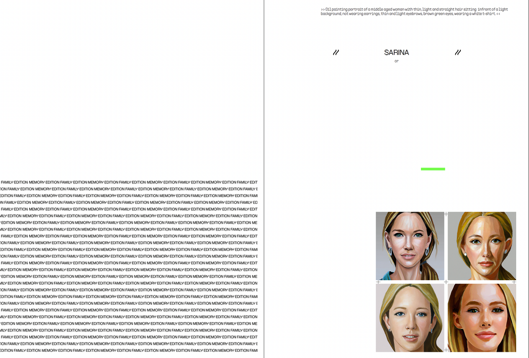I designed a two-part magazine that first explores artificial intelligence, offering insights into its impact and potential. The second part showcases AI-generated portraits of my family,